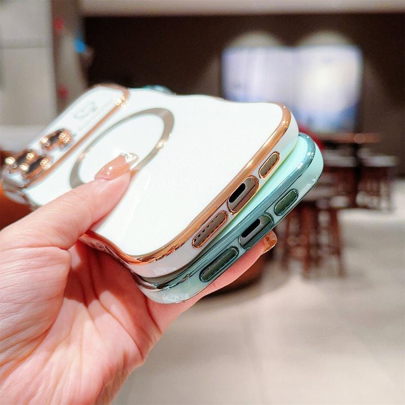 Magnetic Soft Cute Wave Frame Curly Shape Love Heart Luxury Plating Phone Case Compatible with MagSafe Shockproof Back Cover for Women Girls