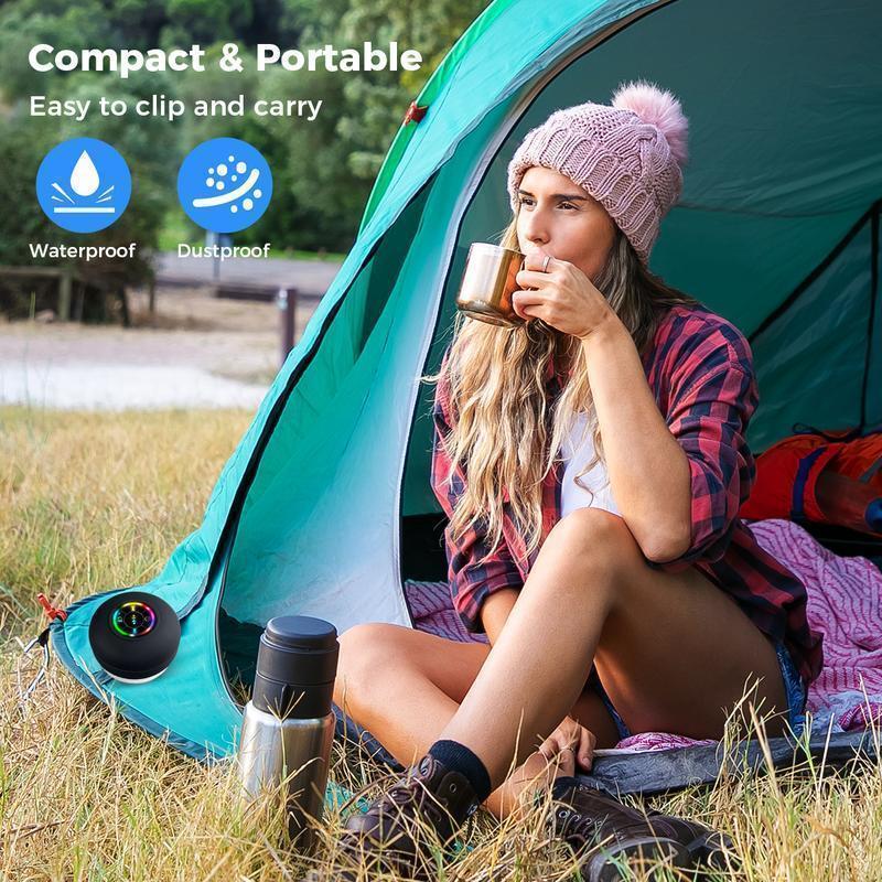 Ultra-Portable & Dual Pairing: Featuring a rugged, shockproof design with a built-in hook and carabiner, this speaker can easily be attached to your backpack, bike, or anywhere else you need it. With True Wireless Stereo support, you can pair two speakers together for a fuller, surround sound experience, making it ideal for outdoor activities like hiking, camping, or beach trips.